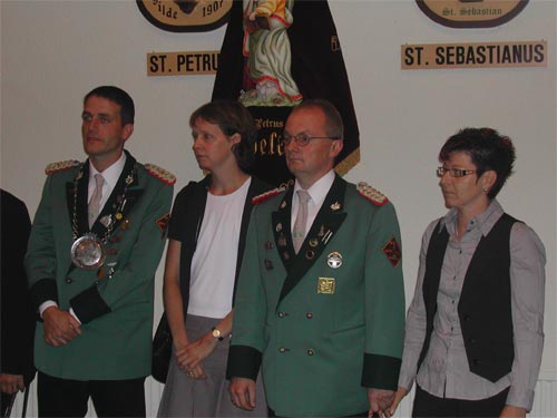 v. l. Festkönig Markus Boetelaers mit Luise & Adjutant Manfred Delbeck mit Jutta |