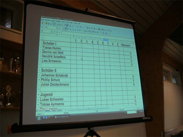 Eine Übersicht über die Ergebnisse wurde für die Zuschauer mit Beamer auf eine Leinwand projiziert.