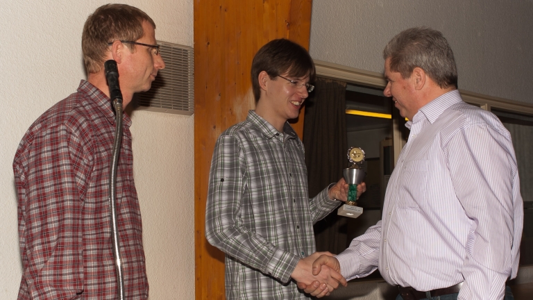 Der Erstplatzierte in der Altersklasse, Rudi van Bühren holt hier den Pokal für die beste Zehn ab.