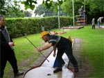 Die Strecke bis zum Ziel war mit den Rädern schnell bewältigt, auch wenn es nicht ganz von alleine geht, wenn sich mehr als 60 Personen per Pedes voran bewegen. Nach der Ankunft in Twisteden und einer kurzen Erfrischung fühlten sich alle aber wieder frisch genug, um am Golfturnier teilzunehmen. Die Teilnehmer wurden in sechs Gruppen eingeteilt und die Regeln erklärt. Alle Schläge die in den Gruppen benötigt wurden, um den Golfball einzulochen, wurden am Schluss zusammengezählt und dann durch die Anzahl der Golfer in der Gruppe geteilt. Die Gruppe mit den wenigsten Golfschlägen konnte sich nach der Siegerehrung über Gutscheine von Eis-Piva freuen.