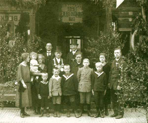 1925 Festkönig Gerhard Ingenpass mit Familie und dem 1. und 2. Preisträger.