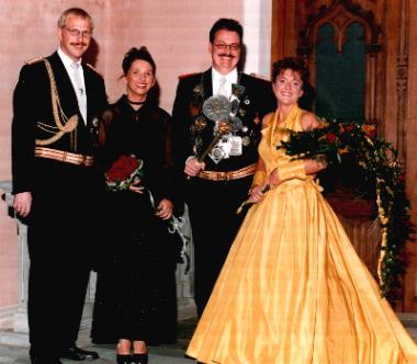 1999 König Peter Cuylen mit Sabine & Adjutant Wolfgang Toonen mit Christina